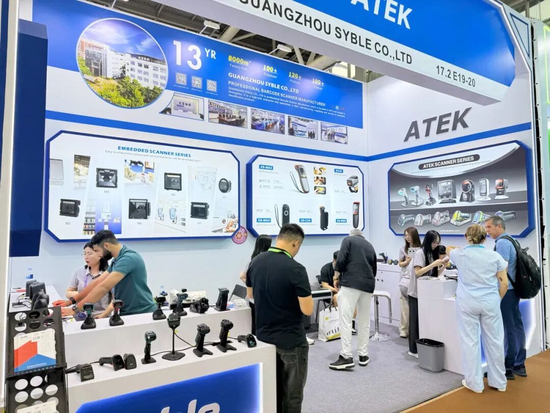 Nesta exposição, nós da Syble trouxemos uma ampla gama de dispositivos de leitura de código de barras, incluindo leitores portáteis, plataformas de leitura bidimensional, leitores de código fixo industriais e outros.